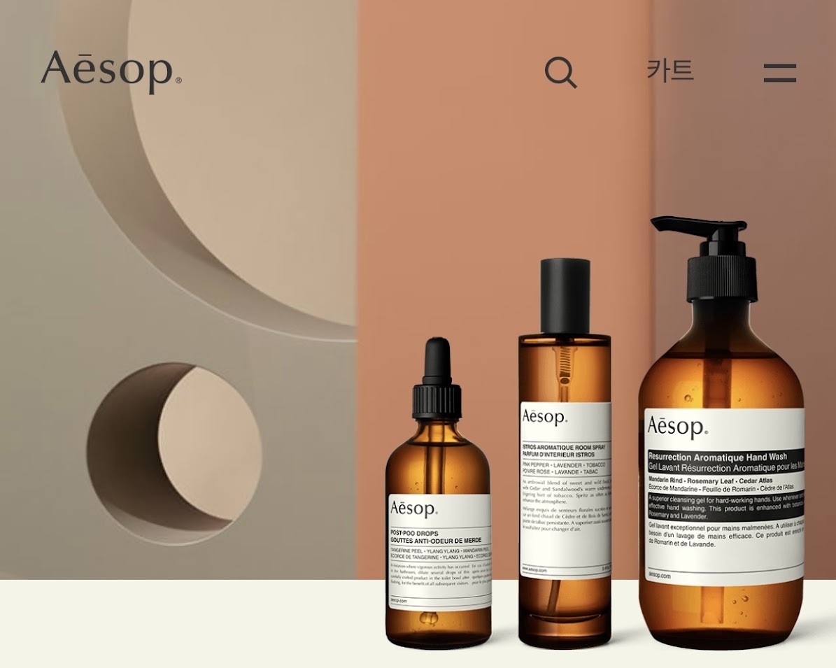 이솝은 화학품의 사용을 최소화하고 식물성 재료 사용을 극대화하여 자연주의를 중요시하는 브랜드 에요